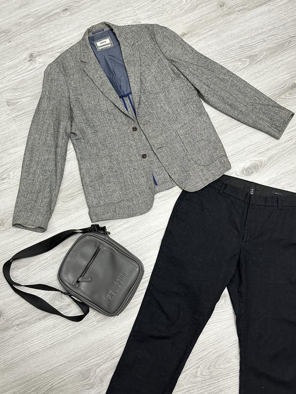Стан ідеальний. Дуже стильний піджак. 40% віскоза 25% шерсть 24% поліестер 10% шовк 1% еластан Плечі 46 Рукав 67 ПОГ 57 ПОТ 52 Довжина 72
