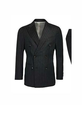 Стильний вовняний класичний сірий в смужку жакет блейзер піджак розмір l-xl оверсайз