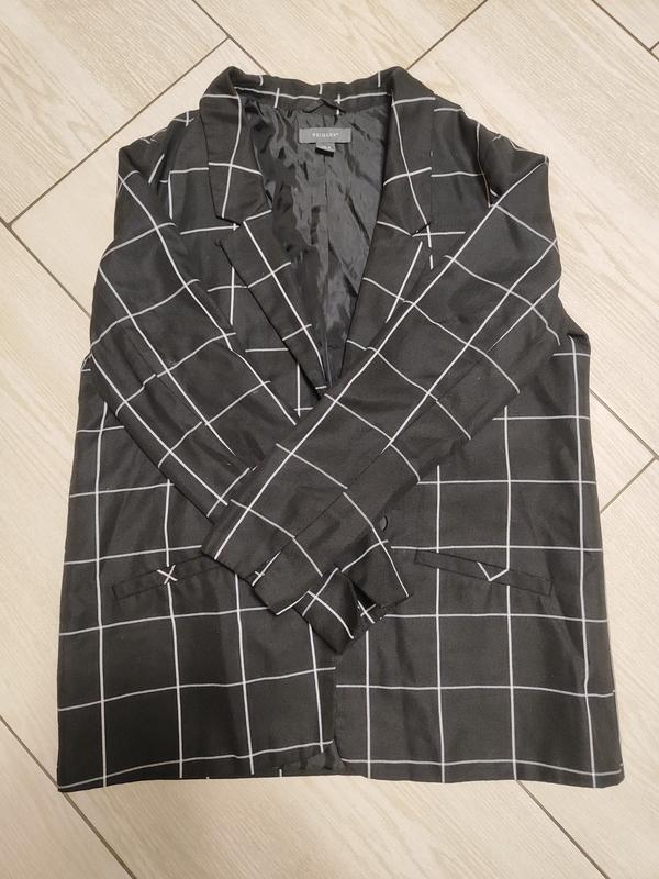 стильний піджак,довжина 73.5см,ширіна 54см,рукав 72 від воротніка.піджак не застібуеться (такий фасон)він як накидка.