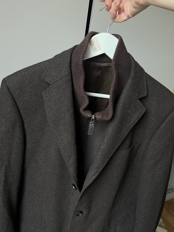 Добрий день, довжина рукава 63см, довжина по спинці 75см., ширина плечей 46. ПОбхват під руками 55, талія 50см.50%вовна/50поліестер