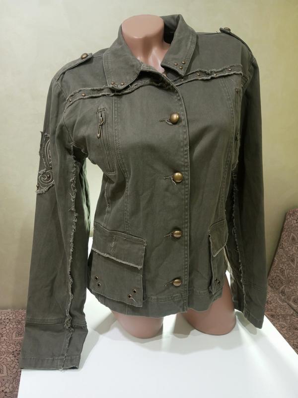 вінтажний піджачок стильний та крутий кольору хаккі підійде під будь-який образ якість чудова виглядає класно тканина злегка тягнеться в ньому комфортно та зручно заміри: - пог 49-52 - пот 44-46 - ширина внизу 47-52 заміри в защіпнутому вигляді - довжина від плеча 56-57 стан ідеальний нового підписуйтесь на мою сторінку 😇