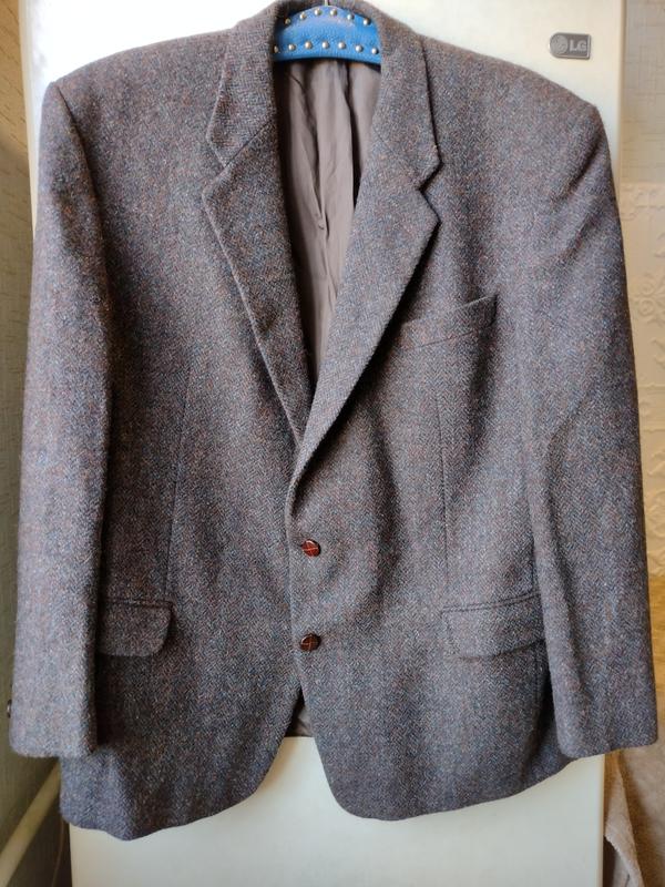 Harris tweed осінньо-зимовий піджак натуральна шерсть. Розмір не вказаний, з огляду на виміри-54-56. ЗАМІРИ: ПОГ-66,ПОТ-64, бічний шов-49, спельчі-19, петлі-56, довжина-79, рукав-64, від пахви-42. Стан ідеальний, без нюансів. Колір коричневий, з кольоровими домішками ( показала поблизу на фото). На два ґудзики, без шліц ззаду. Ґудзики обтягнуті шкірою. На підкладці піджака нанесений паспортний номер, який числиться в реестрі компанії Harris Tweed. Бренд Harris Tweed славиться на весь світ своїми тканинами з натуральної вовни. Їх виробляють тільки вручну найкращі ткачі, майстерність яких передається з покоління в покоління. На кожному матеріалі стоїть сертифікований знак або ORB MARK, яка підтверджує справжність і дотримання всіх встановлених норм під час виробництва. Отже, купуючи піджаки або жилети від Harris Tweed, ви точно отримаєте високоякісний одяг із натуральних матеріалів, який, крім усього іншого, допоможе створити стильний образ. 1993 року Британськийрегулятор прийняв окремий закон, присвячений безпосередньо тканинам і костюмам від Harris Tweed. Цей документ свідчить, що тканини Harris Tweed зобов'язані виробляти суто з натуральної вовни овець із шотландських пагонів Цю тканину тчуть вручну місцеві жителі, часто на тих самих дерев'яних верстатах, що й 2-3 покоління тому використовували їхні предки. Не дивно, що захист і захист такого дивовижного ретровиробництва Британія здійснює на найвищому рівні. Склад: 100% запатентована вовна