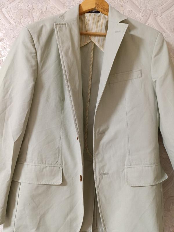 Заміри: пог53, пот 49, поб 54, ширина плечей 45, довжина рукава 61, довжина по спині 77. Підкладка тільки в районі плечей та в рукавах Склад 64 котон, 36 поліамід, підклад 100 поліестер