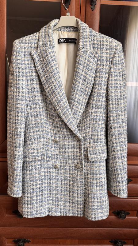 Піджак від Zara, розмір M, колір синій, матеріал - вовна. Гарний приталений фасон, мʼяка тканина, високі круті плечі. Потребує хімчистки! Тому віддаю за 550 грн