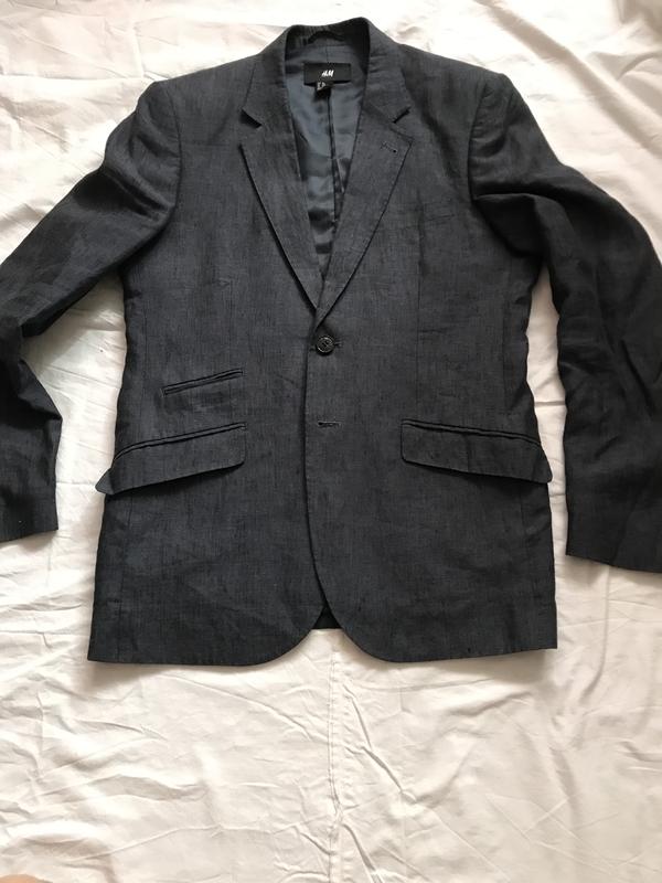 Льняний піджак Ідеальний стан ( пару разів одягнений) Приталений сілуєт (англійський фасон) Класична дліна Розмір 46 Длина по спині 73 Півобхват грудей 50 Півохват таліі 45 Бедра 49 Плече 14,5 Рукав 65
