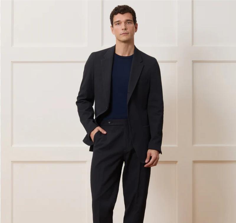 Чорний піджак power suit зі щільної костюмної тканини з преміальними властивостями — не мнеться, відштовхує плями і вологу (Teflon protector), зручний у носінні, добре тримає форму. Склад: 53% поліестер, 43% шерсть, 4% еластан Підкладка: 55% поліестер, 45% віскоза Розмір: 52 (європейський) Підійде на L-XL Made in Bulgaria, tailored in Europe 📏 Заміри Довжина по центру спини — 76 см ПОГ (під пахвами) — 57 см ПОТ (талія) — 54 см ПОС (стегна) — 57 см Плечі — 49 см (разом з підплічниками — 52 см) Рукав — 66 см Застібка на два гудзики Коротка шліца ззаду Спереду три функціональні кишені: дві нижні + одна нагрудна Усередині чотири кишені, одна з них — на блискавці (safety pocket) Рукави з чотирма гудзиками Завдяки щільній тканині підійде для прохолодної осені, весни. Можна носити, як альтернативу легкому пальто, верхньому одягу. Crease resistant — не мнеться Stain resistant — стійкий до плям Teflon protector — додатковий захист від забруднень і вологи Stretch waistband — комфортна посадка Safety zipper pocket — потайна кишеня на блискавці 📌 Стильний, практичний і статусний варіант для офіційних заходів, офісу, ділових подій. Він підходить для тих, хто хоче виглядати зібрано, впевнено й не турбуватись про складки чи плями протягом дня