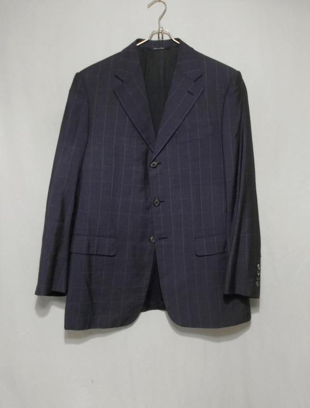 Пиджак в идеальном состоянии, но есть нюанс. Ткань средняя, ближе к тонкой (600 грамм), меланжевого цвета из темно-синих (основной), светло-голубых и оливковых нитей, из них тонкие линии клеток, нить с выраженным отливом. Фасон приталенный, сзади 2 шлицы, застежка на 3 пуговицы, нагрудный карман - край ручного шва листочки нарушен, требуется ремонт, боковые карманы с клапанами, внутренние карманы. Ручные петли, вручную пришита подкладка, роговые пуговицы, подкладка из разных тканей: основная - черная с вышитым логотипом, в рукавах - белая. На оф сайте подобные стоят 2400€ Состав: 50% шелк, 30% лен, 20% шерсть Мерки (на бирке 50/6R): плечи 48 см ПОГ 57 см ПОТ 52 см низ 58 см рукав 64 см длина 80 см Lanvin ― французский модный дом, основанный Жанной Ланвен в 1889 году. Это третий старейший французский модный дом, который все ещё работает.