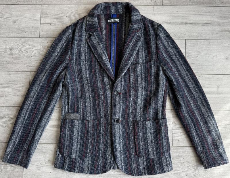 Шикарный безподкладной, фактурный пиджак в полоску от известного бренда, красивое плетение, брендированные пуговицы, очень мягкий и приятный на ощупь, приталенный, отлично смотрится на теле Идеальное состояние Размер 50; L (маломерит на 48; М) замеры: грудь 51, длина 70, плечи 43, длина рукава от плеча 67