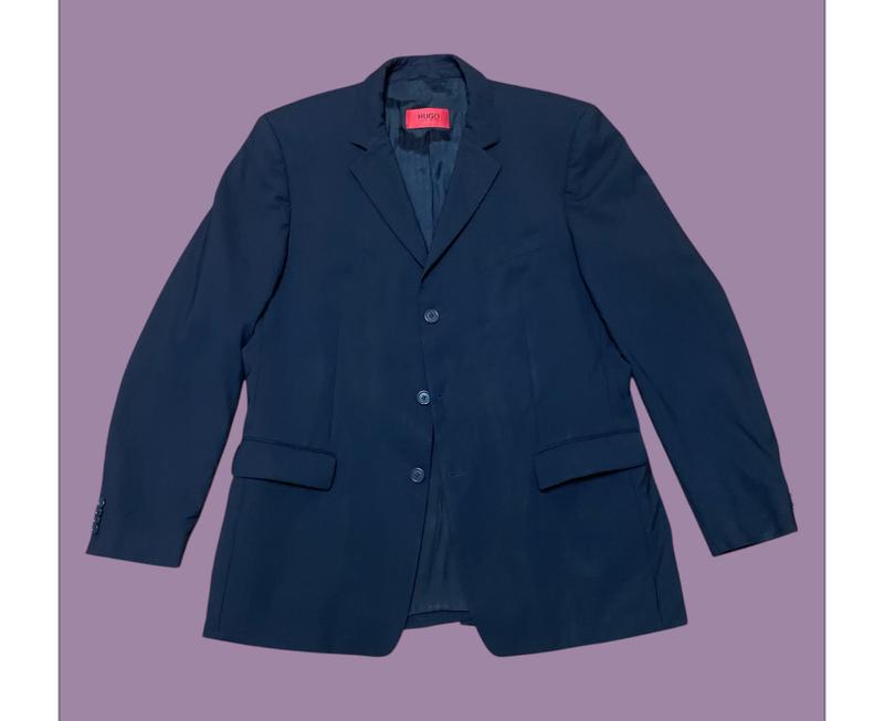 піджак HUGO в 52 розмірі, ньюанс,- в місці кармана трохи примʼята тканина, в остальному стан хороший, заміри на фото Заміри на фото