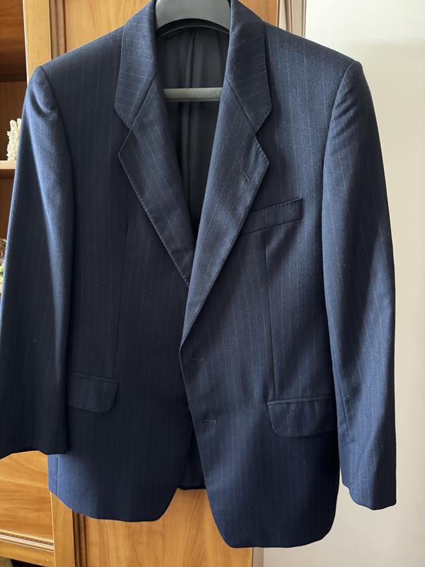 Темно Синій шерстяний піджак в полоску від Boss. Крута якість , посадка , дуже стильний , базова річ Заміри : Ог - 50-52 Плечі - 43 Довж рукава - 60 Довж виробу - 74-75 Річ дуже якісна