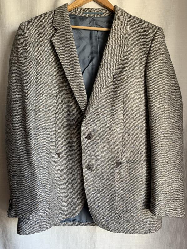 Піджак чоловічій або жіночий розмір L , склад тканини вовна, 50%, шёлк 15 , підкладка віскоза, довжина виробу 80см, довжина рукава 64см, по груддях 55см, ширина низ 60см