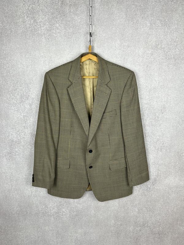 Чоловічий піджак Magee — бренд із більш ніж 150-річною історією ірландського кравецтва та якісних вовняних виробів. Модель виконана у класичному стилі з візерунком «гусяча лапка». Ідеально підійде як для ділових зустрічей чи урочистих подій, так і для повсякденного елегантного образу. • Бренд: Magee • Стиль: класичний чоловічий піджак • Принт: гусяча лапка • Матеріал: вовняна суміш, підкладка з сатину • Колір: бежевий / коричневий / чорний • Стан: відмінний, як новий (без дефектів) Заміри (приблизні, в положенні на рівній поверхні): • Плечі — 43 см • Груди (під пахвами) — 52 см • Рукав — 63 см • Довжина по спині — 79 см