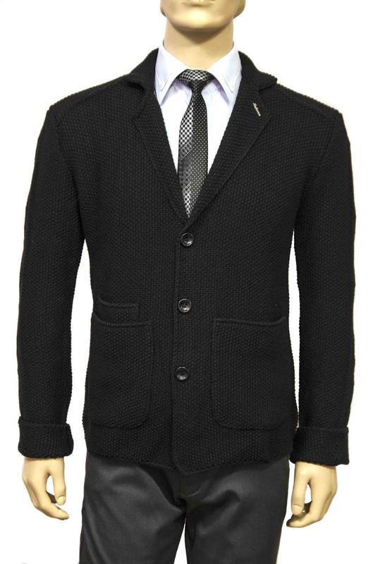 Модельний молодіжний піджак чорного кольору. Силует — напівобтислий. Материал - трикотаж. Виробництво — Туреччина. Заміри:Напівоб'єм грудей 60 см., талії 52 см., по низу 58 см. Довжина по спині 75 см., рукава від плечового шва 70 см.