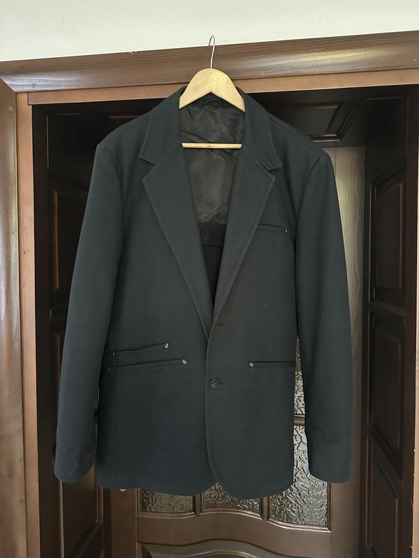 Чорного кольору,без блиску,тканина-щільний джинс дуже хорошої якості.Одягався два рази(всі кишені зашиті).Дуже стильна річ як чоловіка,так і для жінки.Заміри:довжина 78 см,довжина рукава 71 см,півокружність грудей 63 см,півокружність низу 63 см,плечі(від коміра до рукава)17 см.Будете задоволені покупкою.