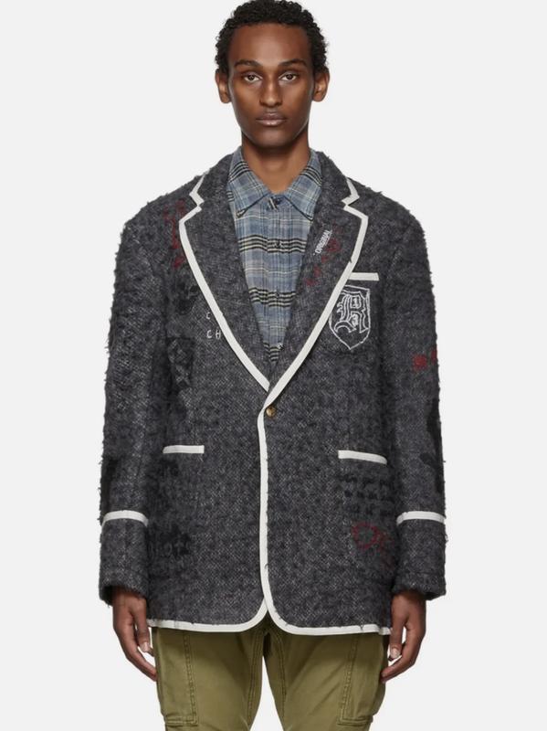 Стильний вовняний блейзер мега дорогого модного бренду R13. Унісекс. Оверсайз. Розмір XS. Тканина вовна, щільна, дрібна вязка. Заміри плечі 50см, груди 52см, талія 50см, довжина від плеча 77см