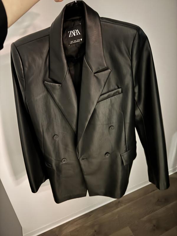 Піджак виготовлено зі штучної шкіри, розмір вказано С але підійде і на М