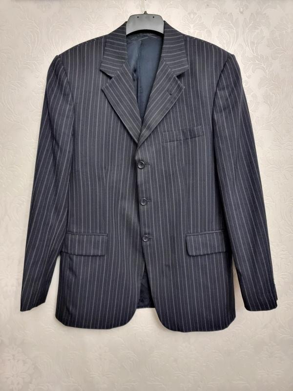 Темно-синій чоловічий піджак у смужку, з кишенями, з двома шліцями ззаду Крій прямий Кишені внутрішні Матеріал м'яка костюмна тканина Сезон осінь Розмір 50 НПОГ – 52 см НПОТ – 50 см НПОБ - 53 см По плечах 45 см Плечо 15 см Довжина – 77 см Довжина рукава – 64 см У дуже хорошому стані. Без нюансів, без сторонніх запахів.