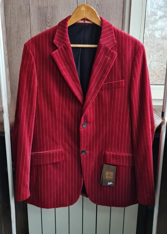 Піджак новий оксамитовий в дрібну смужку, колір бордо бренду 4YOU. Довжина-77см. ПОГ-53см. Плечі-45см. Довжина рукава від плечового шва-65см. ПОТ-50см.