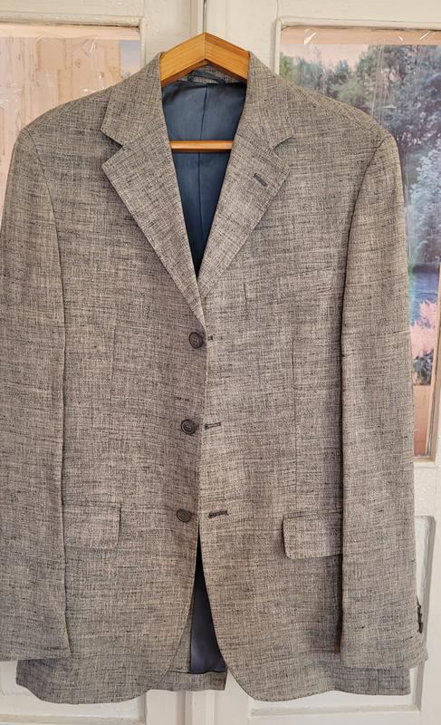Піджак чоловічий, новий, тканина 100%льон, дуже гарний, розмір не підійшов. Заміри, довжина 77,рукав 67,між рукавами 44,під пахвами 56,ш низа 54