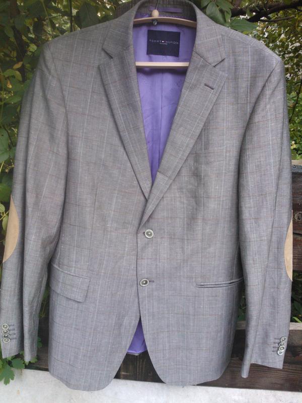 Оригінальний стильний сірий піджак відомого бренду ,легка клітина. Тканина добре тримає форму,елегантнa. Шерсть 76%,лен24%, підкладка вискозаи ацетат з логотипом бренду. Плечі 47см, ПОГ 58см,довжина 76см, довжина рукава 68см.