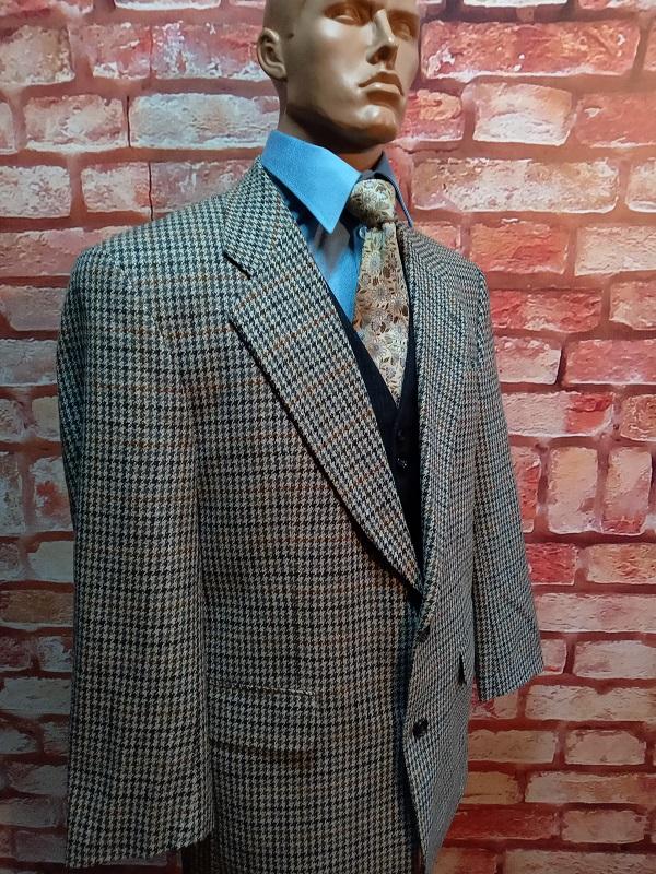 Піджак вовняний Aldo Colitti вінтажний Матеріал щільний, вовна/кашемір. Крій класичний приталений Розмір: 52 Заміри (см): плечі — 50, пахви — 57, талія — 53, низ — 58, довжина по спині (без коміра) — 78, рукав від плеча — 59 Стан: дуже гарне, сліди носіння абсолютно незначні