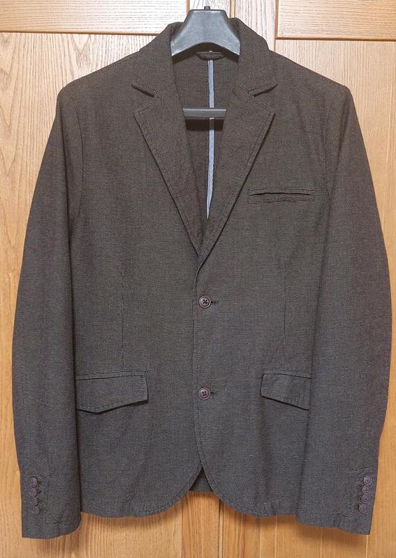 М'який, без підплічників, фактурний піджак, розмір XL. Мірки: плечі 47 см, рукав 71 см, груди 58 см, довжина 74,5 див. 3 кишені +2 внутрішніх.