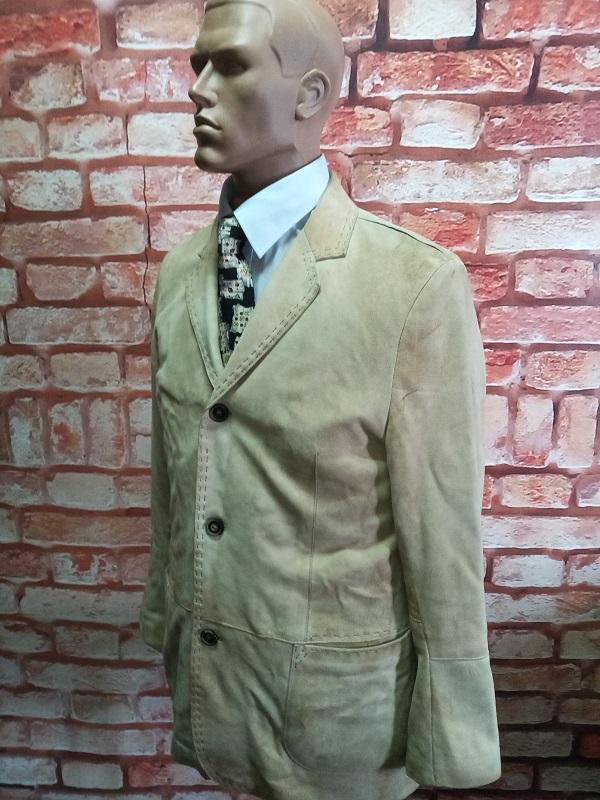 Піджак шкіряний DIBI Milano Made in Italy вінтажний 00-е Натуральна шкіра, дуже м'яка, підкладка віскоза. Розмір: 50 Заміри (см): плечі — 45, пахви — 55, талія — 51, низ — 57, довжина по спині (без коміра) — 80, рукав від плеча — 64 Стан: дуже гарне, сліди носіння абсолютно незначні