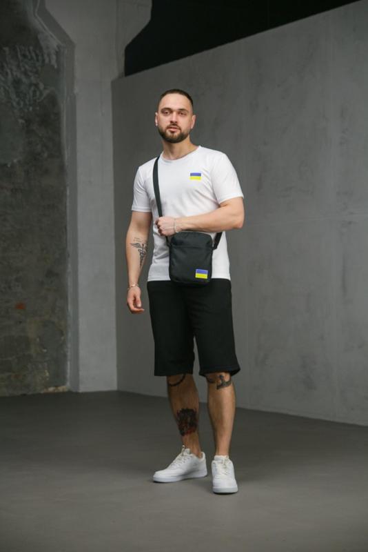 Комплект чоловічий intruder: футболка з прапором на грудях біла + шорти трикотажні чорні +...