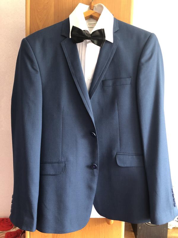 Продам комплект пиджак+брюки+рубашка+бабочка. Пиджак с бабочкой новые, не ношеные . Рубашка и брюки пару раз одевались . За замерами и доп фото пишите }Из дефектов только на брюках сзади на кармане пуговичка потерялась . Больше дефектов нету.