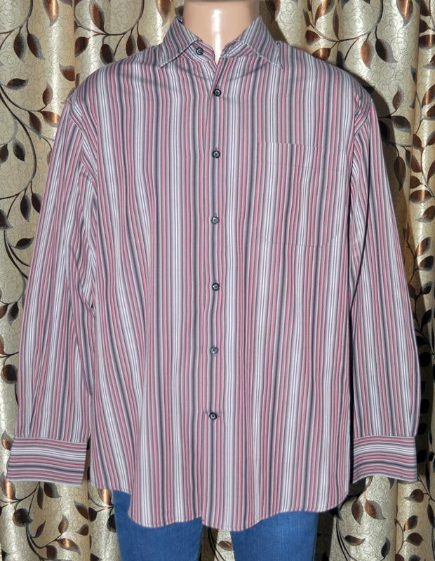 Чоловіча сорочка Biaggini Розмір - L Довжина - 77 Напівобхват грудей – 62,5 Напівобхват талії – 61 Напівобхват стегон (нижнього краю) - 61 Довжина від горловини до низу - 68 Плечі - 49 Рукав - 62 Напівобхват краю рукава - 11 Торг доречний! Пакую сам.