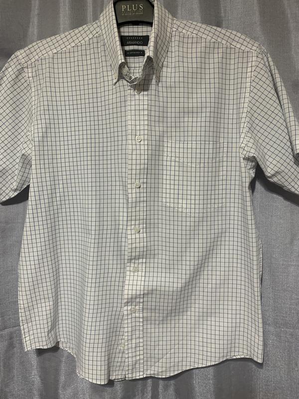 Класична сорочка з бавовни. Заміри: довжина - 72см., плечі - 47см., рукав - 23см., ПОГ - 56см., ПОТ - 55см., ПОБ - 57см
