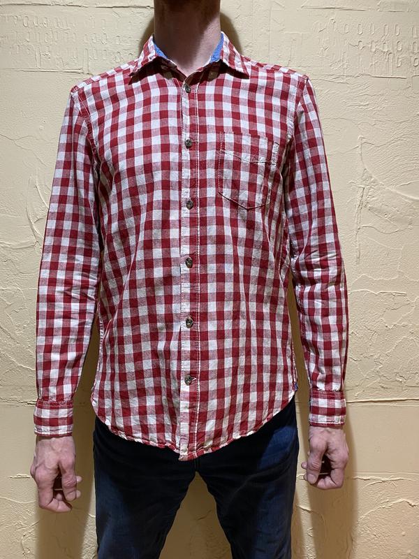 Рубашка в красно-белую клетку от H&M 50% котон, 50% лён На рост 175, S