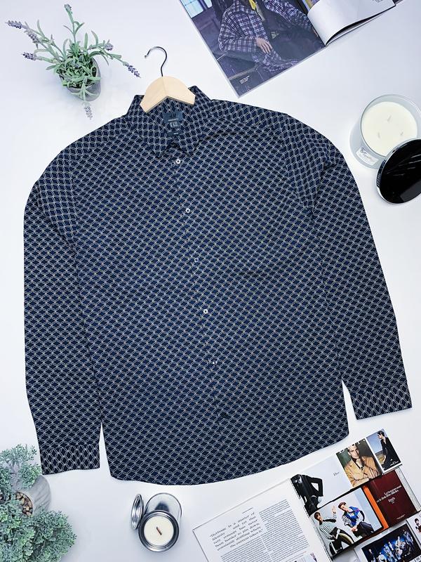 //H&M// Брендова темно-синя сорочка в класний принт. •slim fit •100% бавовна •ідеальний стан ✔️Розмір XL ✖️ЗАМІРИ: •плечі 49 см •груди 61 см •рукав 68 см •довжина 79 см