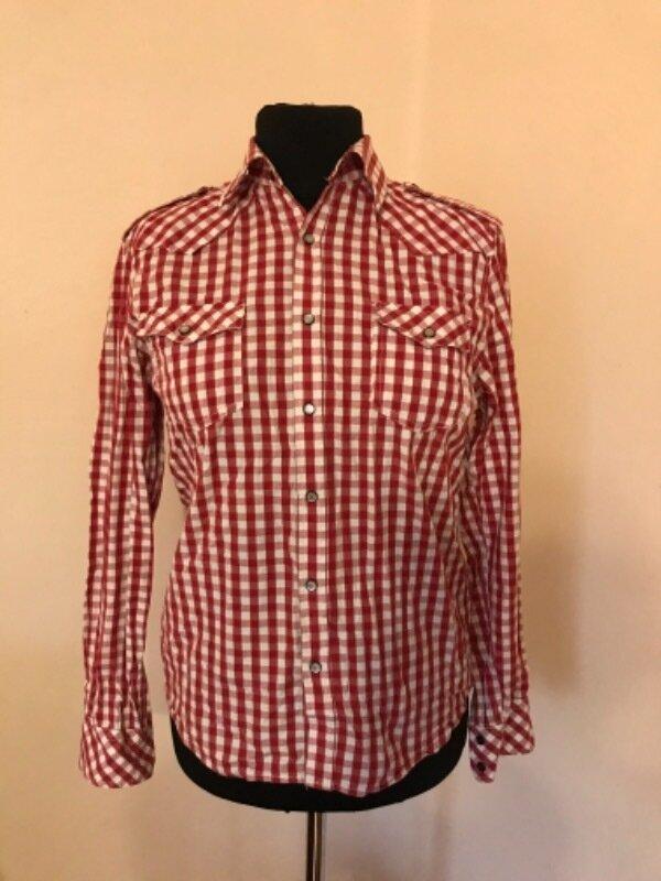 Тип одягу: Сорочки Класна сорочка з котону середньої щільності, розмір М вказано ( демонстровано на манекені 52 розміру). Довжина- 73см, плечі-46см, рукав від плеча- 65см, пог- 56см, пот- 51см, поб-55см