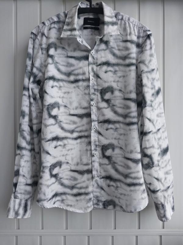 Склад: 55% бавовна, 45% поліестер Slim Fit (сорочка приталена). Заокруглений низ. Вказано розмір S. Орієнтуйтесь на заміри: Напівобхват грудей: 54 см Напівобхват талії: 48 см Напівобхват по низу: 51 см Довжина (від найвищої точки плеча): 73 см Довжина рукава (від плеча): 64 см