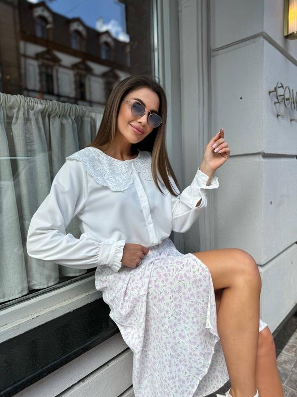 Лаконічна сорочка в білому кольорі з мереживним комірцем🙌 Мод: 2412 Колір: білий Розмір: м, л Тканина: котон Довжина 63 см Стильна спідниця в трендовому квітковому забарвленні з розрізами,на ґудзиках😻 Мод: 2134 Колір: чорний, пудра Тканина: штапель Розмір: універсал 42-44 Ціна : 700 грн ▪️Є накладений платіж з передоплатою 200 грн ✔️Надсилання новою поштою по всій Україні ✔️ 100% передплата на картку приват банку БАГАТО НОВИНОК в моєму інтернет магазині на СТОРІНЦІ ПО ДУЖЕ ДОСТУПНІЙ ЦІНІ