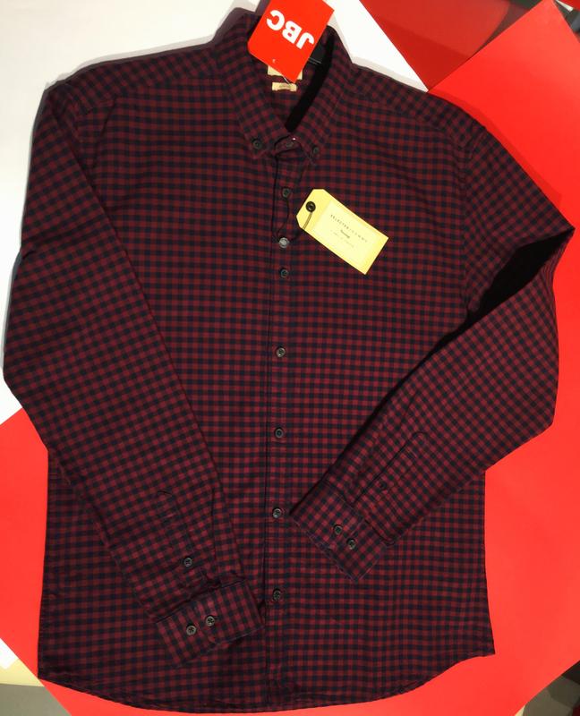 Сорочка чоловіча Selected, приємна до тіла, нова з біркою, Бордово-синя крупна клітинка, приталена. Розмір XL. Склад:100% бавовна