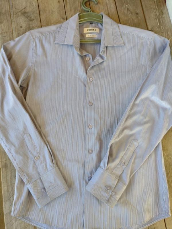 сорочка чоловіча ідеальний стан відмінна якість відомий бренд розмір вказаний M тканина приємна на дотик фото з замірами вказала Рубашка без пошкоджень і дифектів Всі питання виясняйте перед ОПЛАТОЮ