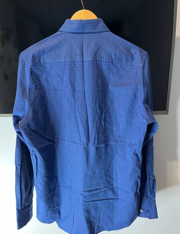 Синяя мужская рубашка в белый маленький горошек Размер л Ог 110 Нова Бавовна