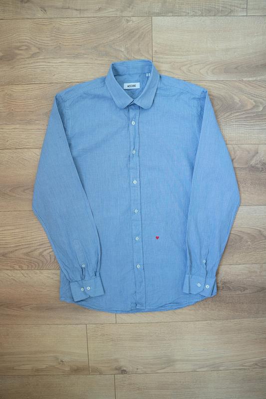 Продам фірмову чоловічу сорочку Moschino.Розмір М. Стан відмінний,ніяких дефектів немає,виглядає дуже стильно.Заміри:ширина під пахвами:52см.,плече:15см.,рукав:64см.,довжина по спині:76см.,плечі:43см.