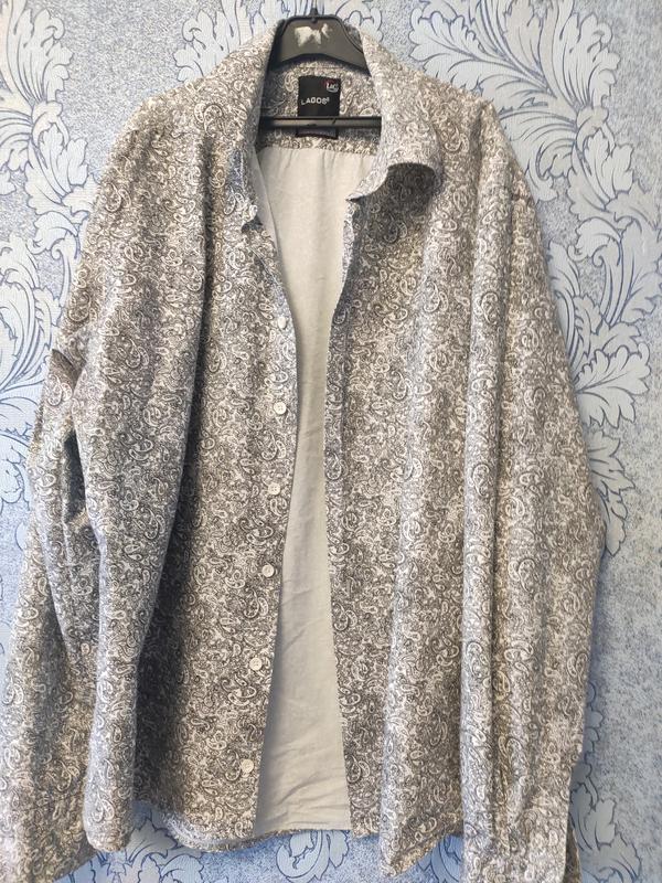 Продам котонову чоловічу сорочку, розмір XXL, в ідеальному стані, без нюансів. Заміри: довжина рукава 63 см, довжина по переду 73 см, ширина від пройми до пройми 60 см.