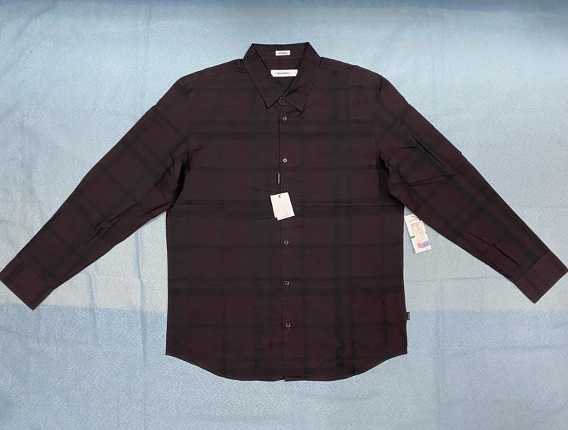 Оригінал ! Чоловіча сорочка американського бренду Calvin Klein , виконана в кольорі чорної смородини в темну з синім відтінком клітинку , виробництво Бангладеш , матеріал ( тонкий ) : 100% бавовна ! Матеріал тонкий , ґудзики з логотипом бренду, манжети на 2 ґудзиках та комір з внутрішньої сторони , є комплект запасних гудзиків ! Розмір: US L : ширина ( в груді ) - 59 см, довжина передньої планки - 71 см, довжина спинки ( від шва коміру ) - 78 см, рукав ( від шва плеча ) - 66 см, рукав ( від шва пройми ) - 52 см , плечі - 47 см , комір - 43 см ; US XL : ширина ( в груді ) - 63 см, довжина передньої планки - 72 см, довжина спинки ( від шва коміру ) - 80 см, рукав ( від шва плеча ) - 67 см, рукав ( від шва пройми ) - 53 см , плечі - 51 см , комір - 46 см .