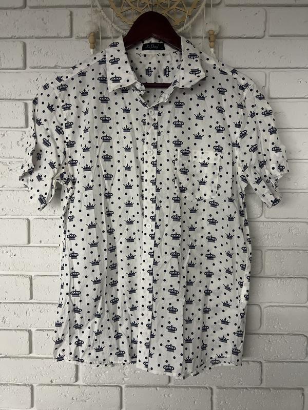 Рубашка белая с синими коронами 100% хлопок Замеры; длина 76 см; ПОГ 52 см; плечи 47 см Размер S-M