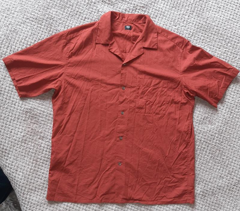 UNI QLO мужская качественная летняя рубашка ярко кирпичного цвета, состояние идеальный размер М но и на L сядет норм, 53% модал и 47% коттон, легкая и приятная на ощупь.
