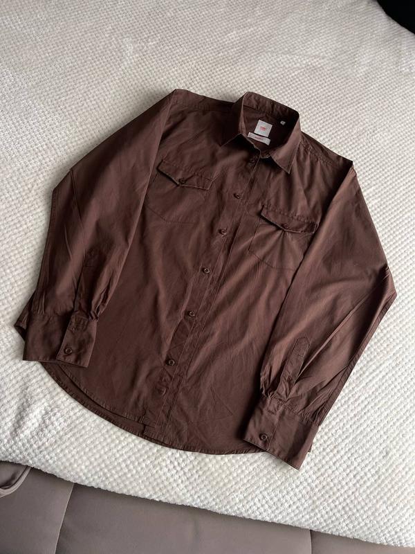 Сорочка в шоколадному кольорі Стан ідеальний Розмір по бірці L Склад 100% бавовна Заміри Плечі: 46см Груди: 57см Рукав: 63см Довжина: 75см
