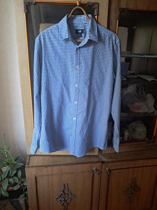 Чоловіча гарна сорочка в гарному стані,майже нова від бренду H&M.Слад тканини:полієстер+котон.Пог-58см.Плечи-47см.Довжина -80см.