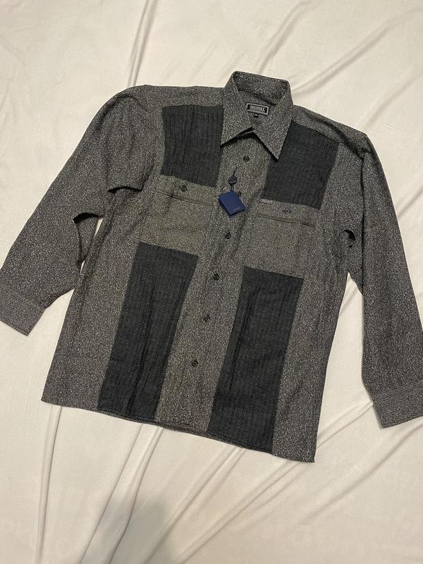 Чоловіча сіра сорочка нова Довжина 76 см Рукав від плеча 60 см Плечі 52 см Від пахви до пахви (півобхват грудей) 56 см Талія і бедра відповідно так само оскільки в сорочки прямий крій