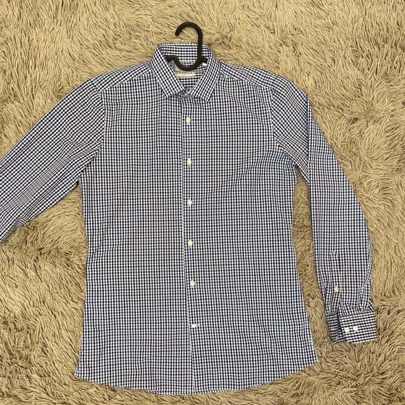Сорочка від Next, розмір M, приталений крій. Колір - блакитний. Виготовлена з бавовни. Довгий рукав. Стан нової речі.
