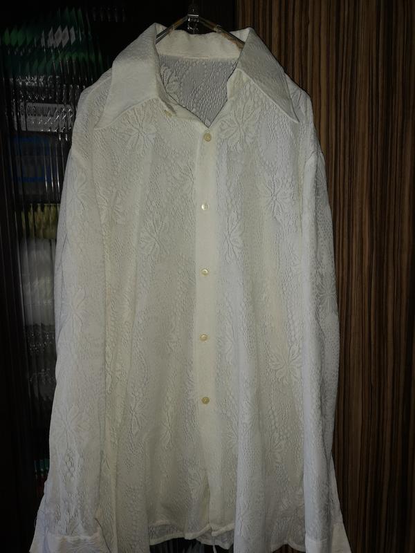 Молочний відтінок, не тягнеться, комір-41см,рукав-61.На s-m розмір.