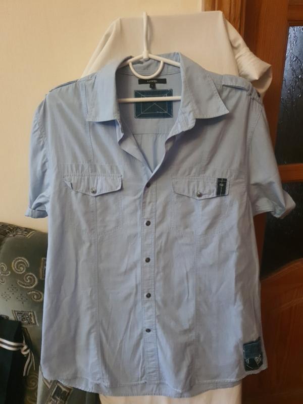 сорочка чоловіча з коротким рукавом блакитна натуральна котонова 74см довжина, 49см плечі, 59см в грудях